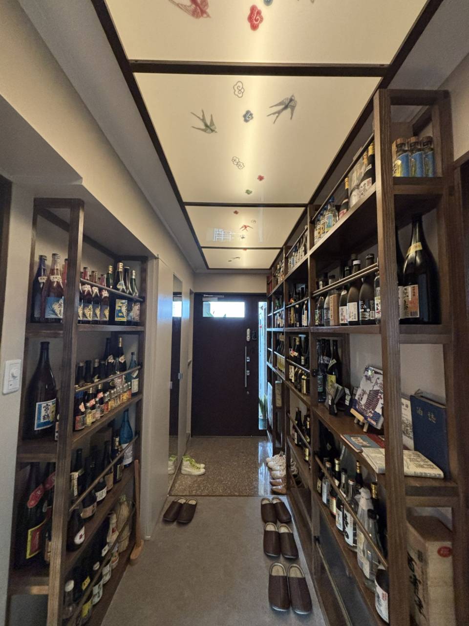 エントランスの壁面には、泡盛が壁一面を埋め尽くす棚が設けられています。沖縄の離島を含む県内各地でつくられる泡盛は、地域ごとに異なる風味と背景を持つ、まさに沖縄の文化そのものです。現在、沖縄県内にはおよそ47〜48か所の泡盛醸造所(酒造所)があり、それぞれが独自の銘柄と歴史を紡いでいます。 私たちは、エントランスにこの泡盛のコレクション棚を設けることで、訪れるお客様に「沖縄という場所で育まれたスピリット(精神)」をひと目で感じてもらい、会話のきっかけとなるよう計画しました。