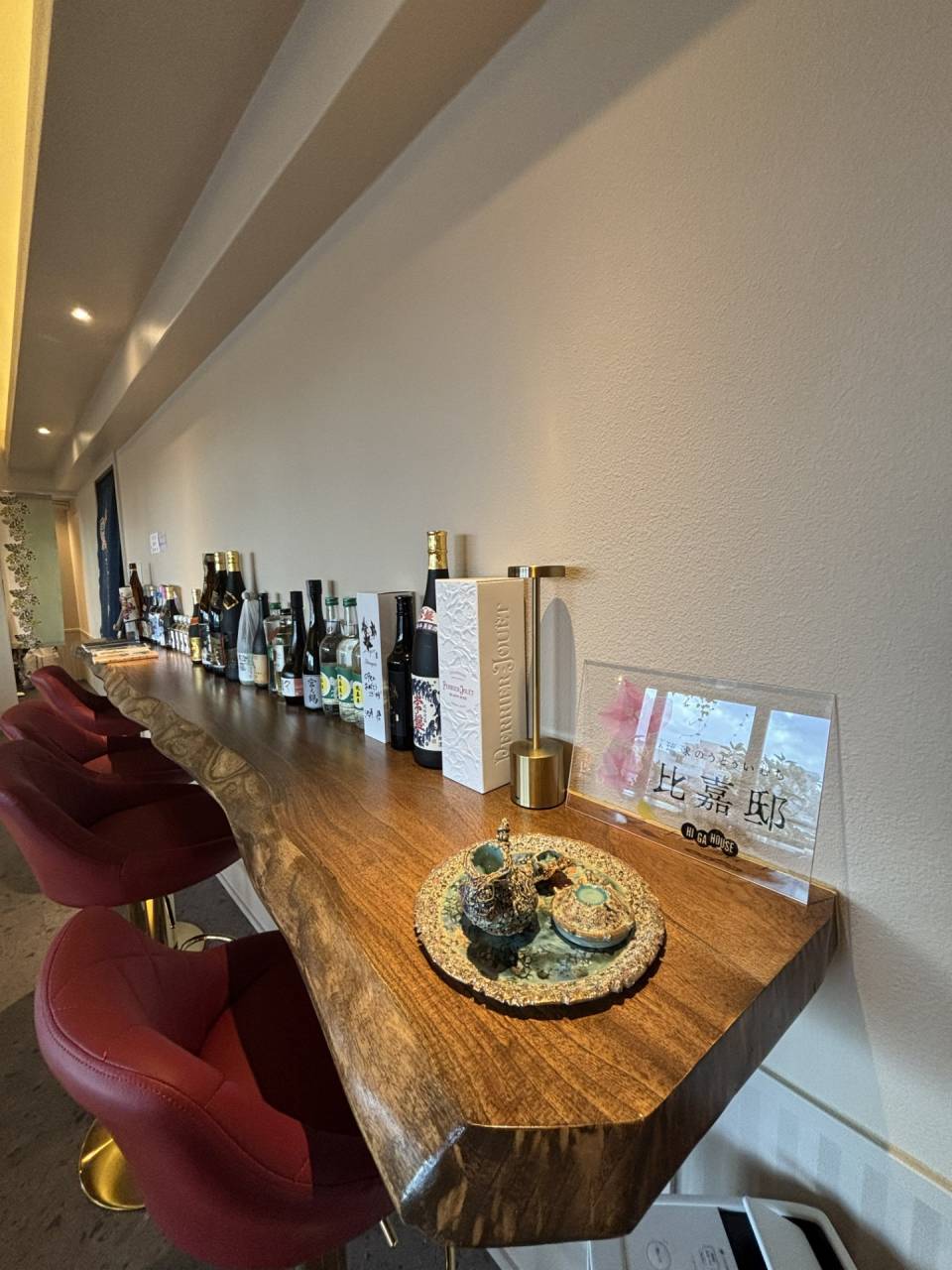 完成した壁は、単なる意匠としての背景ではなく、お客様とオーナー様との会話を生み出す装置として機能します。素材や仕上げについての問いかけが、沖縄の風土や職人文化へと話題を広げ、空間体験そのものを深めていきます。